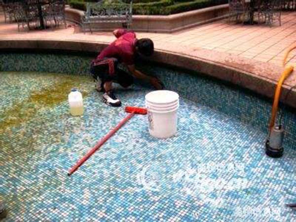 2、进行水池排水,至地底留有20—30公分深的余水。